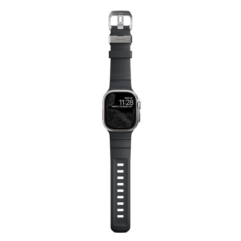 La correa de Nomad diseñada especialmente para Apple Watch Ultra (compatible también con otras versiones) que destaca por su hardware con acabado en titanio para un ajuste y acabado excepcional.